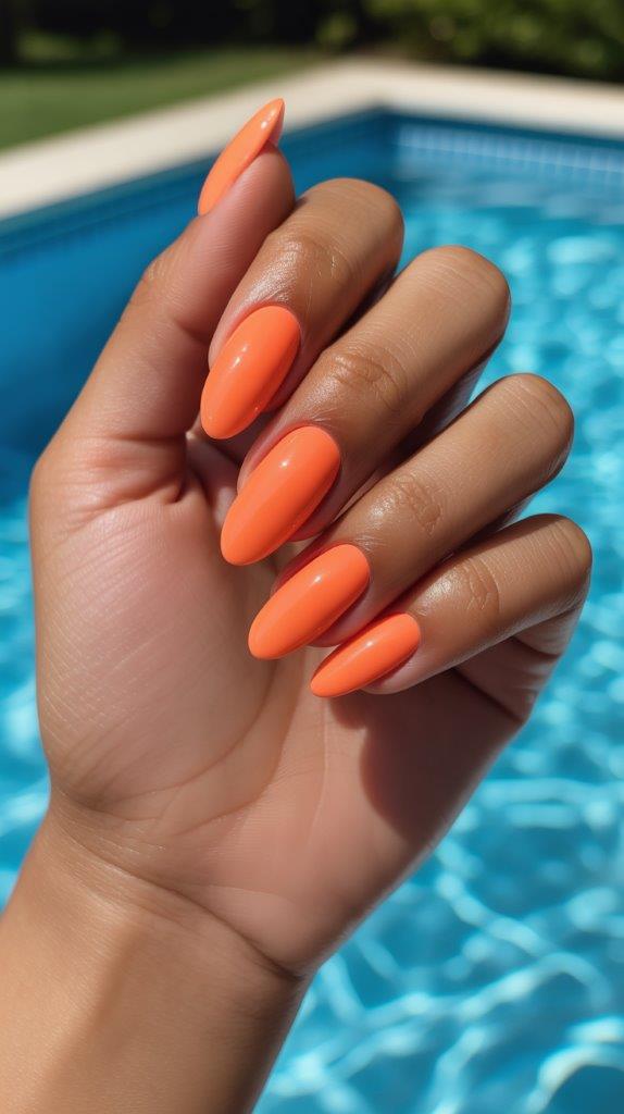 Nothing says summer quite like a color that glows in the dark—or at least feels like it. Electric neon orange creates an incredible contrast against a summer tan. I recommend a high-gloss gel finish to make the color pop even more. It’s loud, it’s proud, and it tells everyone you’re here for the party.