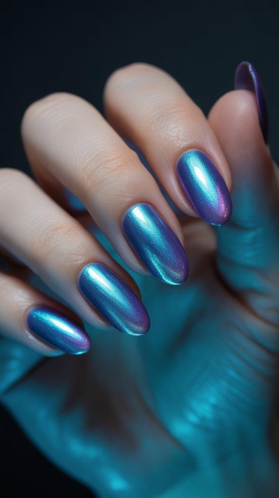 Aura nails use a gradient circle in the center of the nail to create a glowing effect. Combine soft teals and iridescent purples to get that “underwater princess” vibe. When the sun hits the shimmer, your nails will look like they’re glowing from within. Does it get any more magical than that?