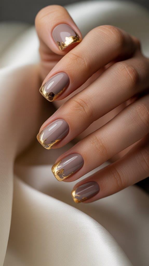 For a touch of elegance, try incorporating golden leaf accents into your French tips. Start with a soft brown or taupe base, and add delicate gold foil or leaf patterns on the tips. This look captures the essence of falling leaves, adding a luxurious and artistic flair to your nails.