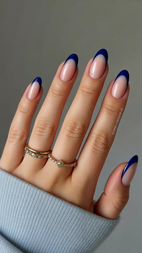 Capture the essence of crisp autumn nights with midnight blue French tips. This deep, rich hue is both mysterious and elegant. Pair it with a light grey or nude base for a stunning contrast that evokes the beauty of a clear, starry autumn night.