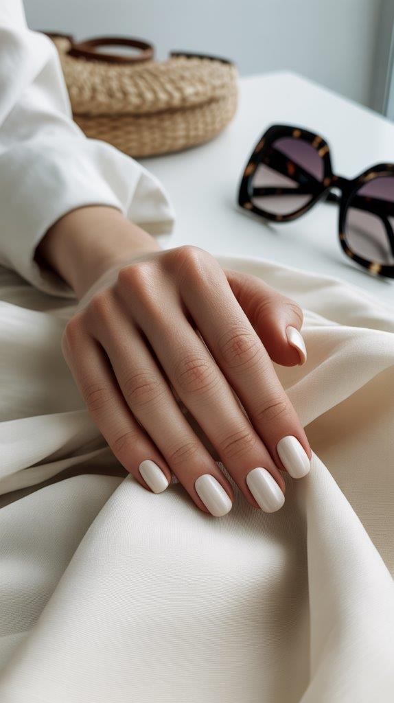 Pure white can feel stark, but a slightly off-white or “vanilla cream” with a subtle creme finish? Perfection. It’s crisp, clean, and pairs beautifully with woven bags, linen dresses, and giant sunglasses. It gives major minimalist chic vibes with barely any effort.