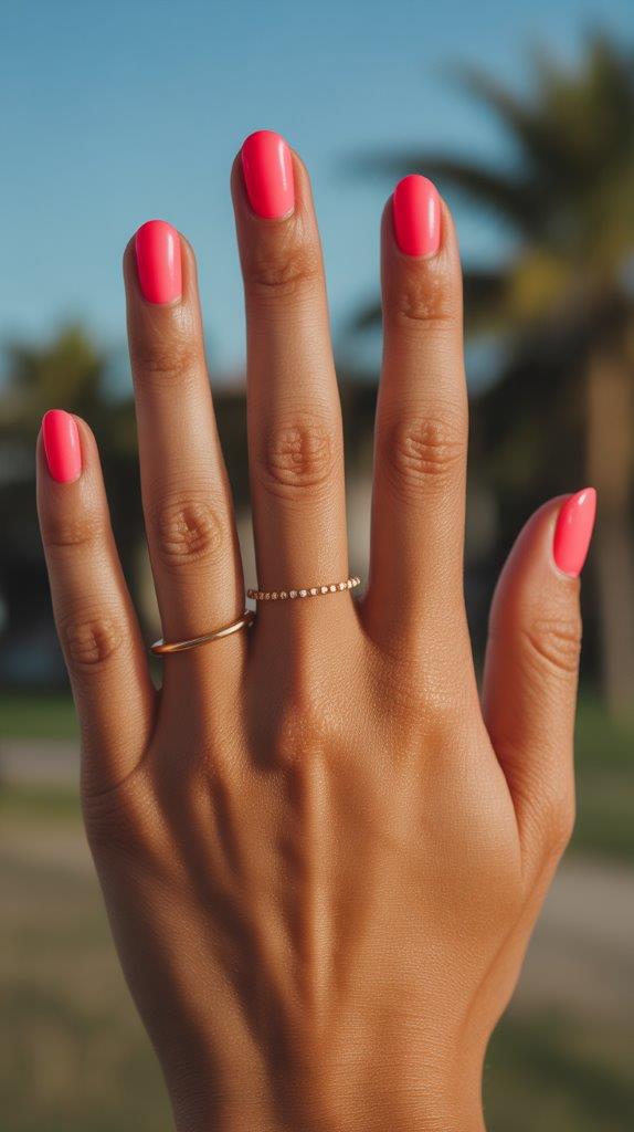 Think of the pinkest part of a watermelon. This is a bold, warm, almost neon-adjacent pink that’s downright fun. It’s for the days you’re feeling extra confident and ready to turn heads. Pair it with a simple gold ring for a look that’s effortlessly cool.