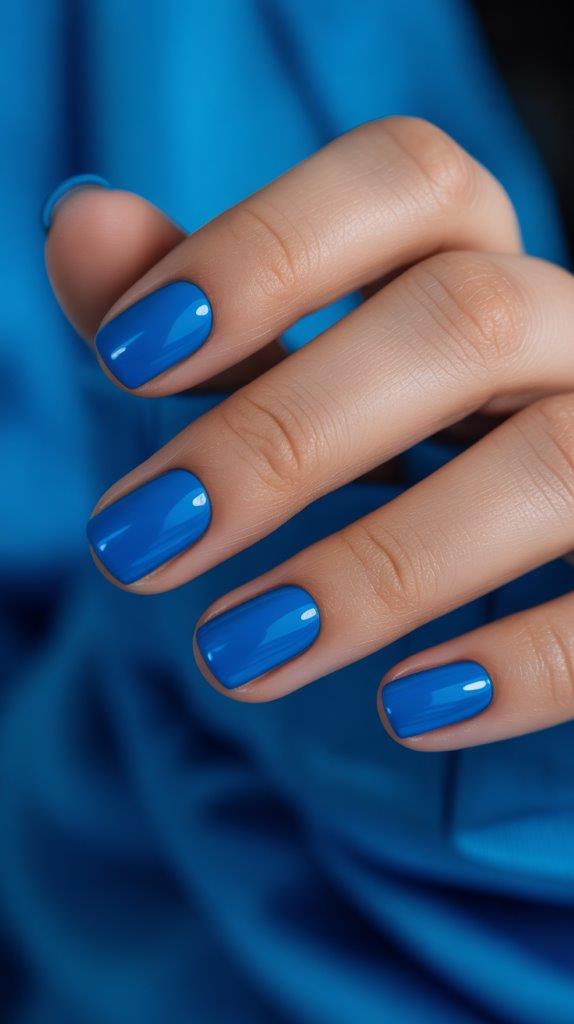 Sometimes, simple wins. Paint every nail a solid, glossy Klein Blue. This color vibrates. It demands attention. You don’t need art or crystals; the color does the heavy lifting.