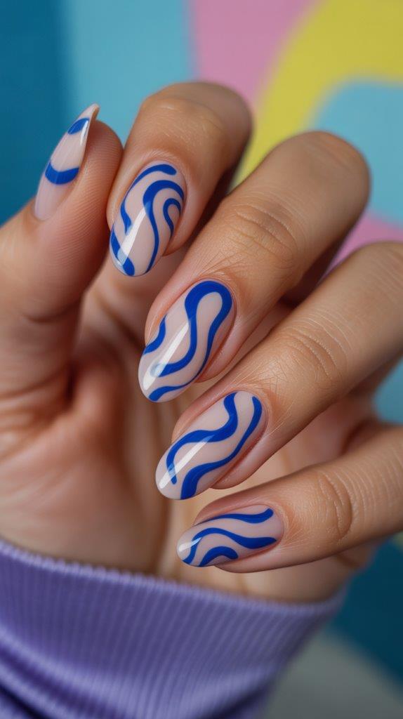 Take a nude base and paint erratic, wavy lines in bright cobalt. The abstract nature means you can’t mess it up. If your hand shakes, congratulations, it’s now an “organic shape.”