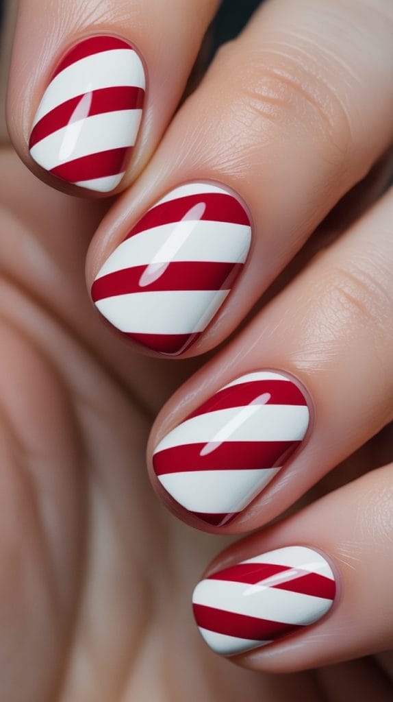 White and red stripes instantly give off holiday vibes. Plus, it’s like your nails are carrying candy—minus the sticky fingers.