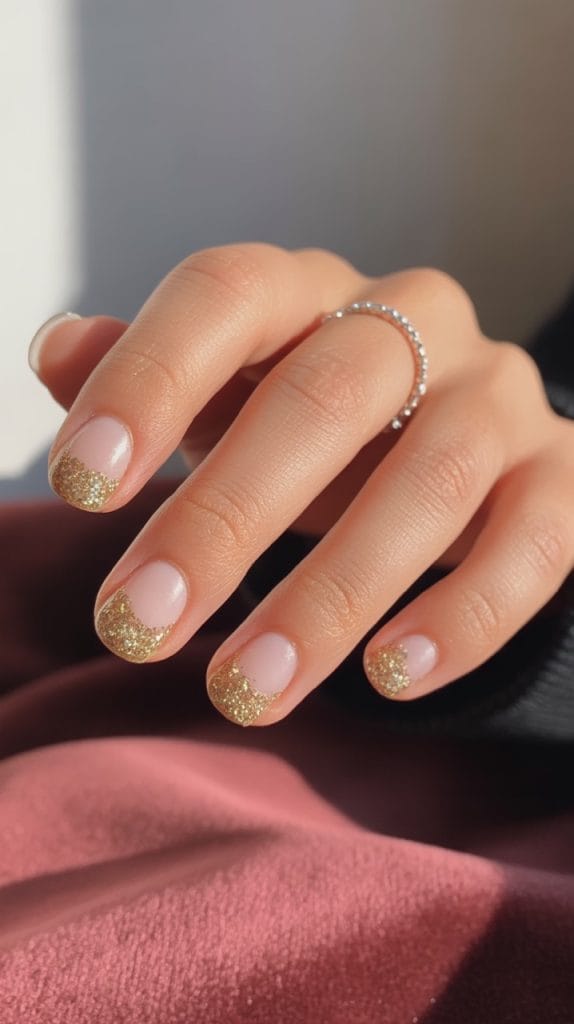Classic French nails but with a thin line of glitter instead of white tips. Elegant yet festive.