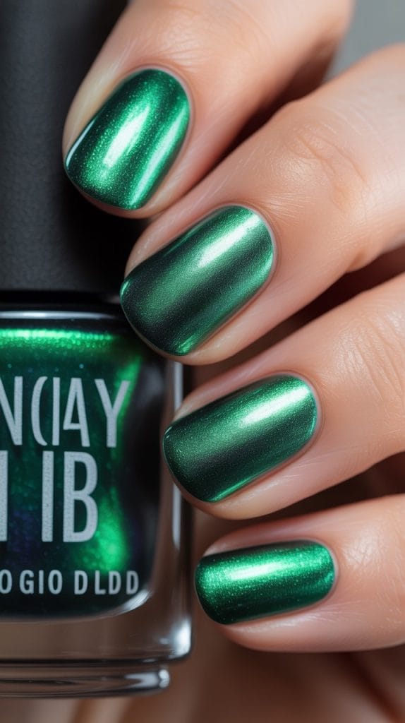 Think foil-like emerald polish. Shiny, bold, and guaranteed to stand out.