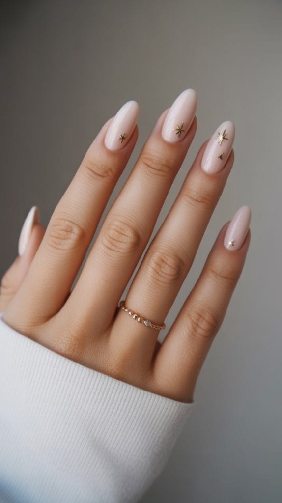 Tiny gold stars on a nude base. Understated, chic, and perfect if you prefer subtle glam.