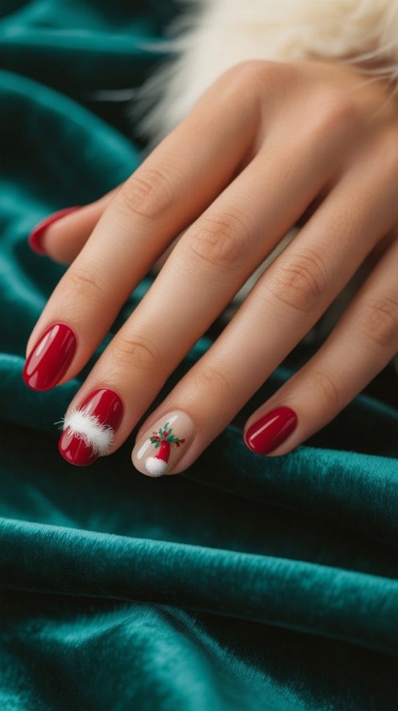 A red base with a Santa hat design on one or two nails? Adorable without being too over-the-top.