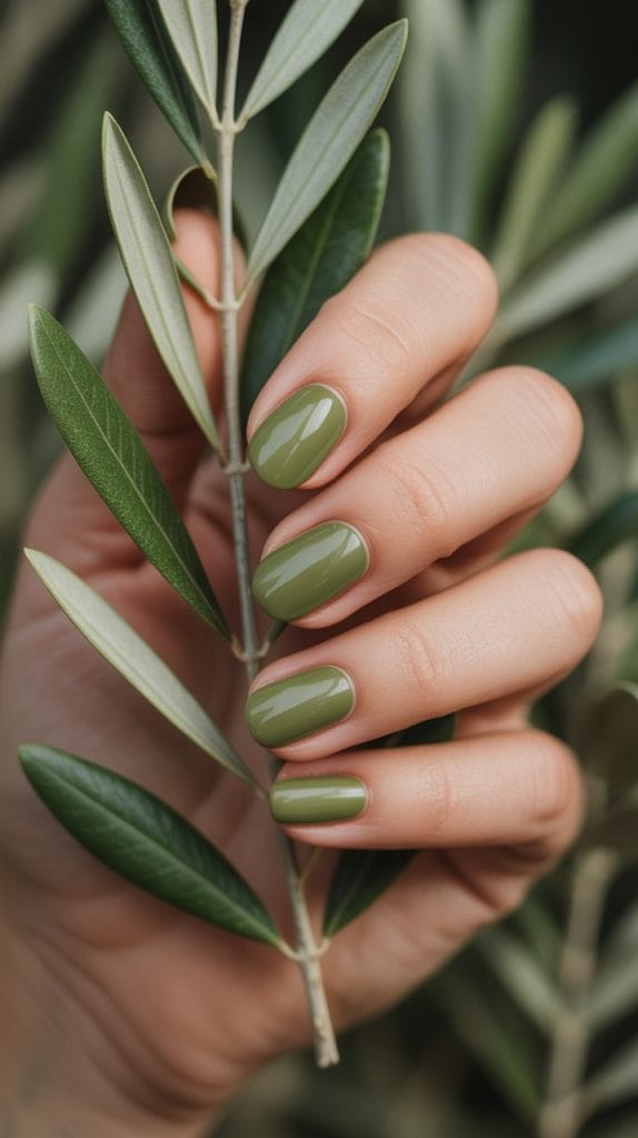 Olive green is an earthy and sophisticated shade that’s perfect for fall. This color adds a touch of nature-inspired elegance to your manicure and pairs well with both casual and formal outfits.