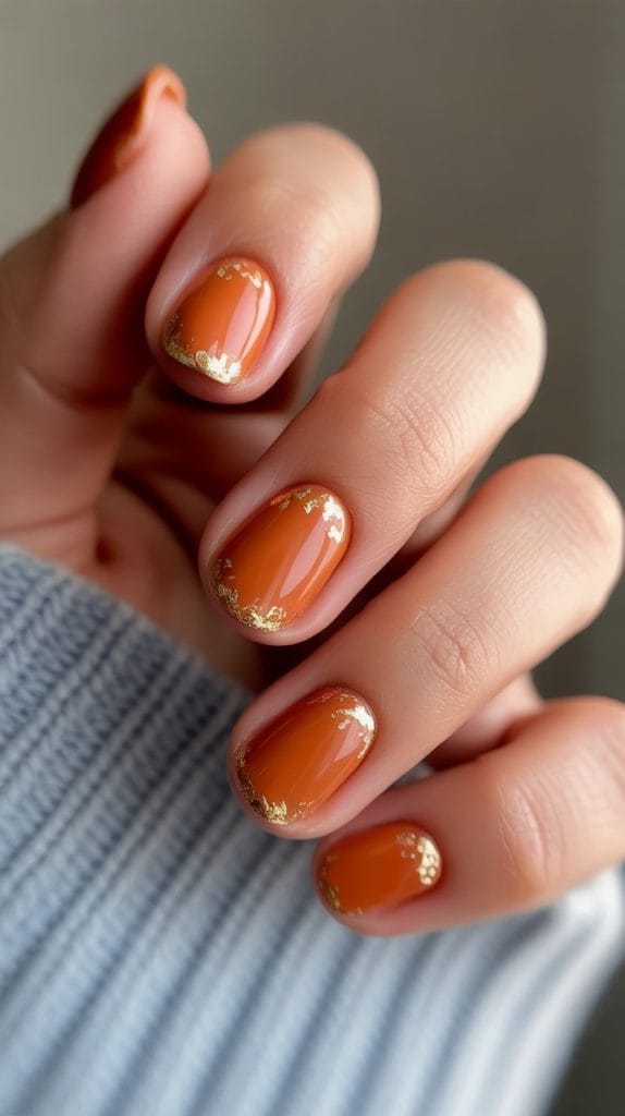 Burnt orange is a classic fall color that looks stunning on nails. This warm and vibrant shade adds a touch of opulence to your manicure. Pair it with gold or copper accents for a luxurious finish.