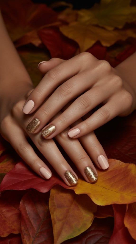 Add a touch of sparkle to your fall nails with golden glitter accents. Whether you choose to apply glitter to an accent nail or incorporate it into a gradient design, the shimmer will catch the light beautifully. This look is perfect for festive occasions or when you simply want to add a bit of glam to your everyday style.