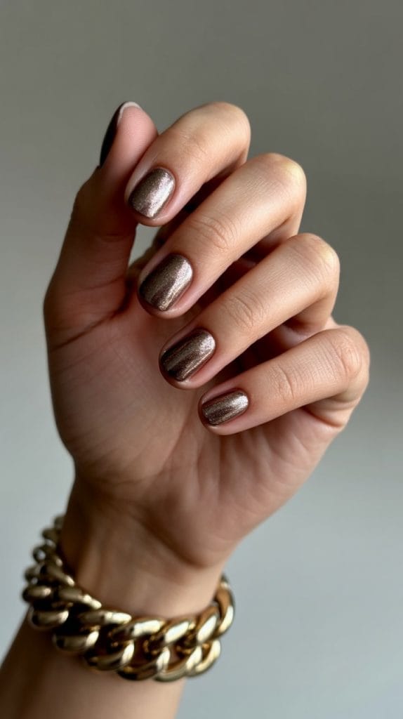 Add a touch of glamour to your fall manicure with metallic bronze nails. This shimmering shade is perfect for those who want a bold and luxurious look. Pair it with gold or copper accessories for an added layer of sophistication.