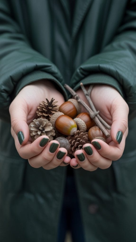 Embrace the earthy tones of fall with a deep forest green manicure. This rich color is both bold and elegant, offering a unique alternative to traditional fall hues. Pair it with gold or silver accents for a touch of luxury, or keep it simple with a high-shine finish.