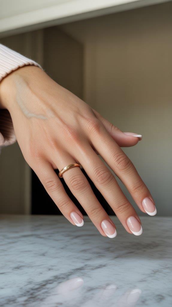 Soften the French tip even further with an ombré effect. The tip blends seamlessly from a sheer nude at the cuticle to a soft blush pink at the free edge. It’s a gradient of elegance that looks incredibly difficult but is oh-so-flattering.