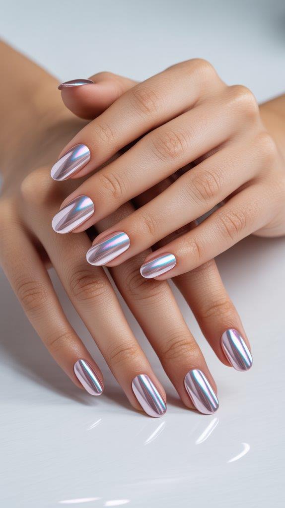 Like the glazed donut, but cooler-toned. A pale lavender base gets a full chrome powder treatment, creating a mirror-like, metallic finish. It’s futuristic, cool, and has an almost liquid-metal elegance that is utterly captivating.