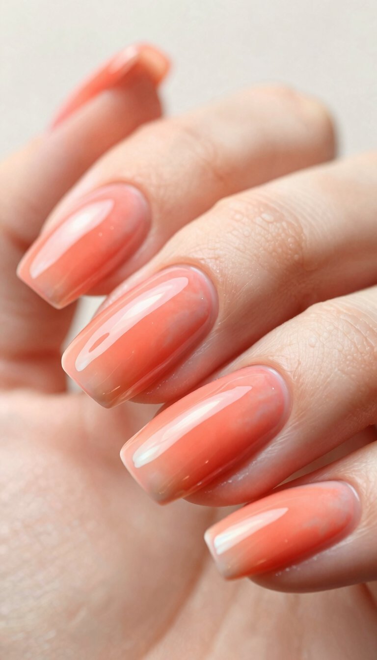 Think of a blotted lip stain, but for your nails. A watery, semi-sheer coral polish applied in one thin coat gives a beautiful, stained-glass effect. It’s effortless, beachy, and feels like you just came back from a tropical vacation (even if you’re just at your desk).