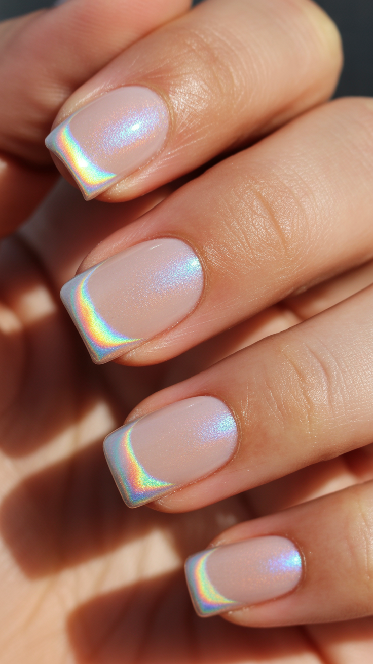 Give the French manicure a futuristic twist. Instead of a white tip, use a fine linear holographic powder or polish to create a subtle, rainbow-reflective tip over a sheer base. It’s a dazzling yet surprisingly wearable take on a classic.