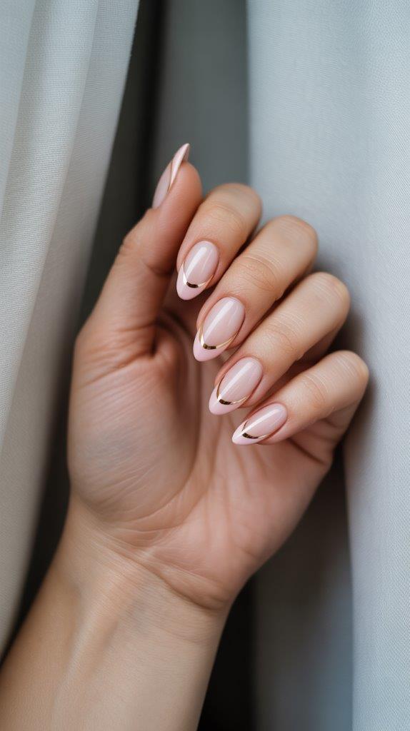 The almond shape makes French tips look extra sophisticated. That tapered edge just hits different with a crisp tip line. Add a thin gold or silver accent line where the tip meets the nail bed, and you’ve got yourself a design that costs $0 extra but looks like a million bucks.