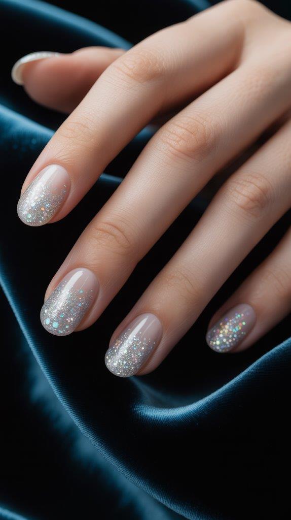 Want major sparkle without the commitment of full-bed glitter? Create a subtle glitter gradient right at your cuticle line. Use a soft, holographic silver or a pastel glitter polish and gently fade it out as you move down the nail. It looks like fairy dust settled at the base of your fingers. Magical, right?
