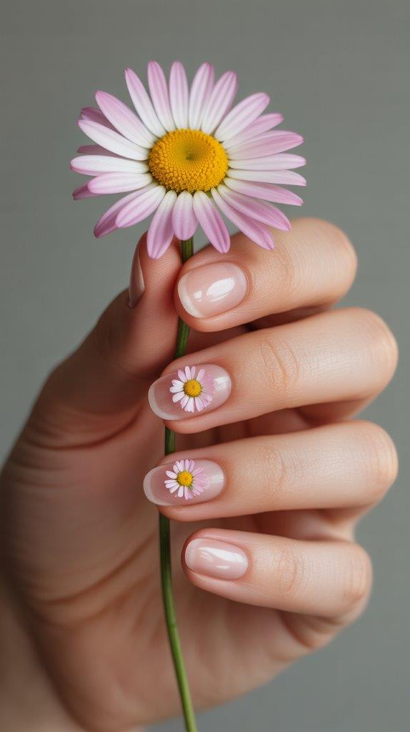 Paint a base of the sheerest, milkiest white you can find. Then, using a barely-there brush and diluted gel colors (think mint, peach, butter yellow), create soft, overlapping blobs of color near the cuticle. Add tiny daisy silhouettes in black liner. It looks like a professional watercolor painting.