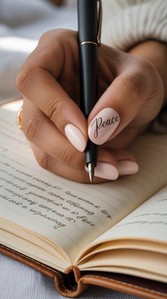Got a mantra? A name? A simple “hey”? Use a micro-detail brush to paint a single, cursive word in black on a nude nail. It’s personal, minimalist, and so chic.