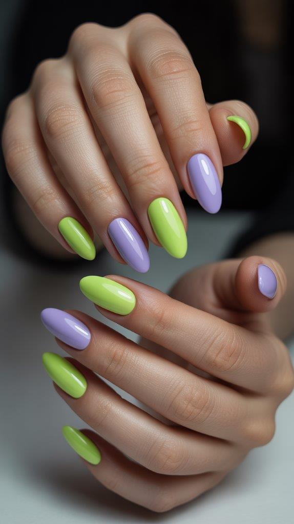 Acidic lime green with soft lavender creates interesting contrast. The aggressive lime softened by gentle lavender is surprisingly wearable and absolutely funky. This combo feels very 2026—unexpected but cohesive.