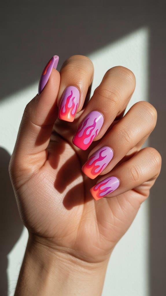Yes, flames. On spring nails. Painted flames in unexpected colors like pink and purple make this classic tough motif feel fresh and funky. The irony of spring florals being replaced by flames is what makes it work.