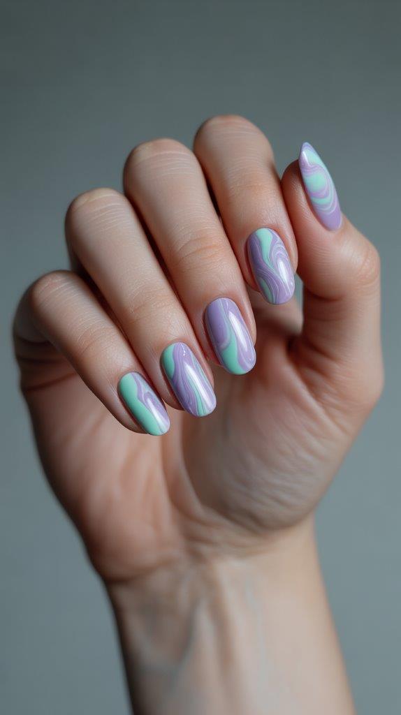 This combo is a spring dream. Imagine a soft lilac and a minty green swirled together using a water marble or silicone tool technique. It creates a soft, cloudy, unicorn-esque effect that’s utterly unique. Every nail will be a one-of-a-kind work of art.