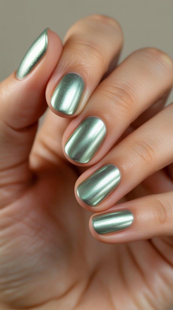 Sage is the queen of earthy-elegant pastels. But let’s not leave it plain. Ask for a barely-there chrome powder brushed lightly over the top. It won’t turn metallic; instead, it gives a soft, ethereal glow that catches the light in the most magical way. It’s subtle sophistication at its finest.