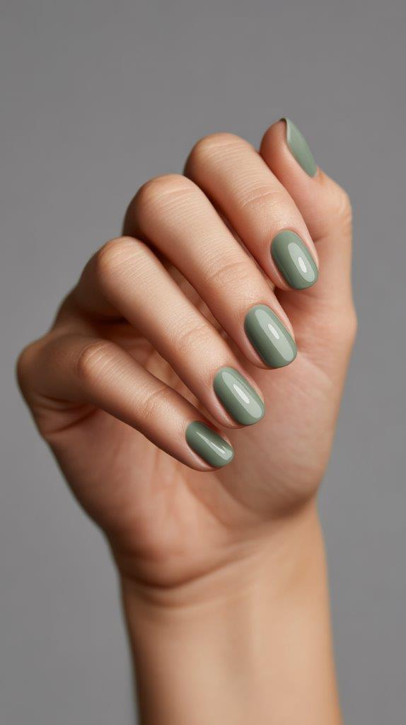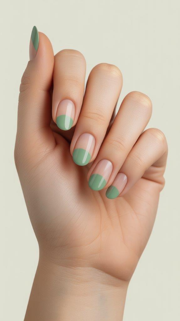 Texture play is a major trend. Paint your nails a full matte sage green. Then, using a glossy top coat, only paint the tips to create a shiny, reverse French effect. The contrast between the velvety matte and the high-shine tip is incredibly tactile and visually interesting.