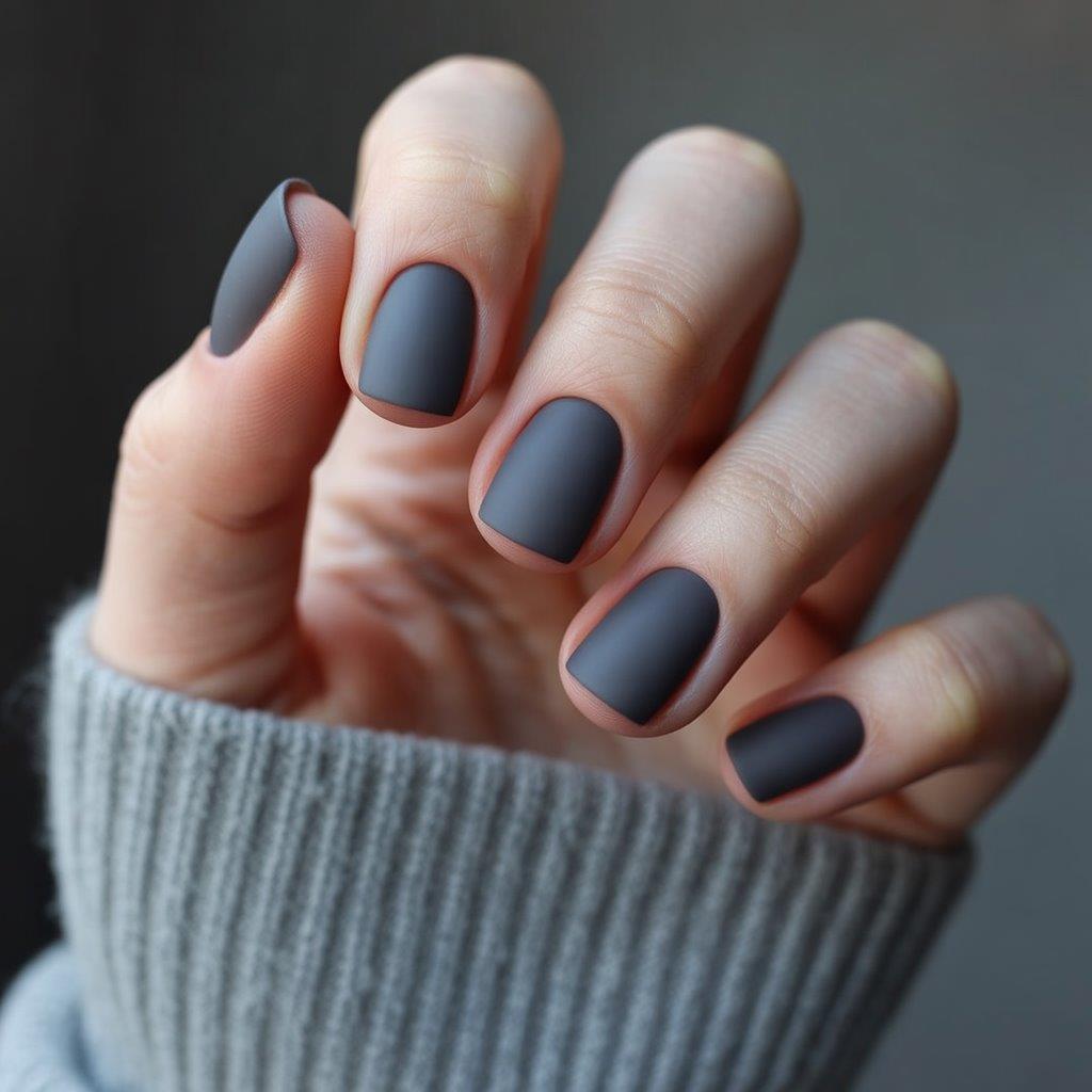 Matte charcoal nails feel cozy, modern, and incredibly stylish.