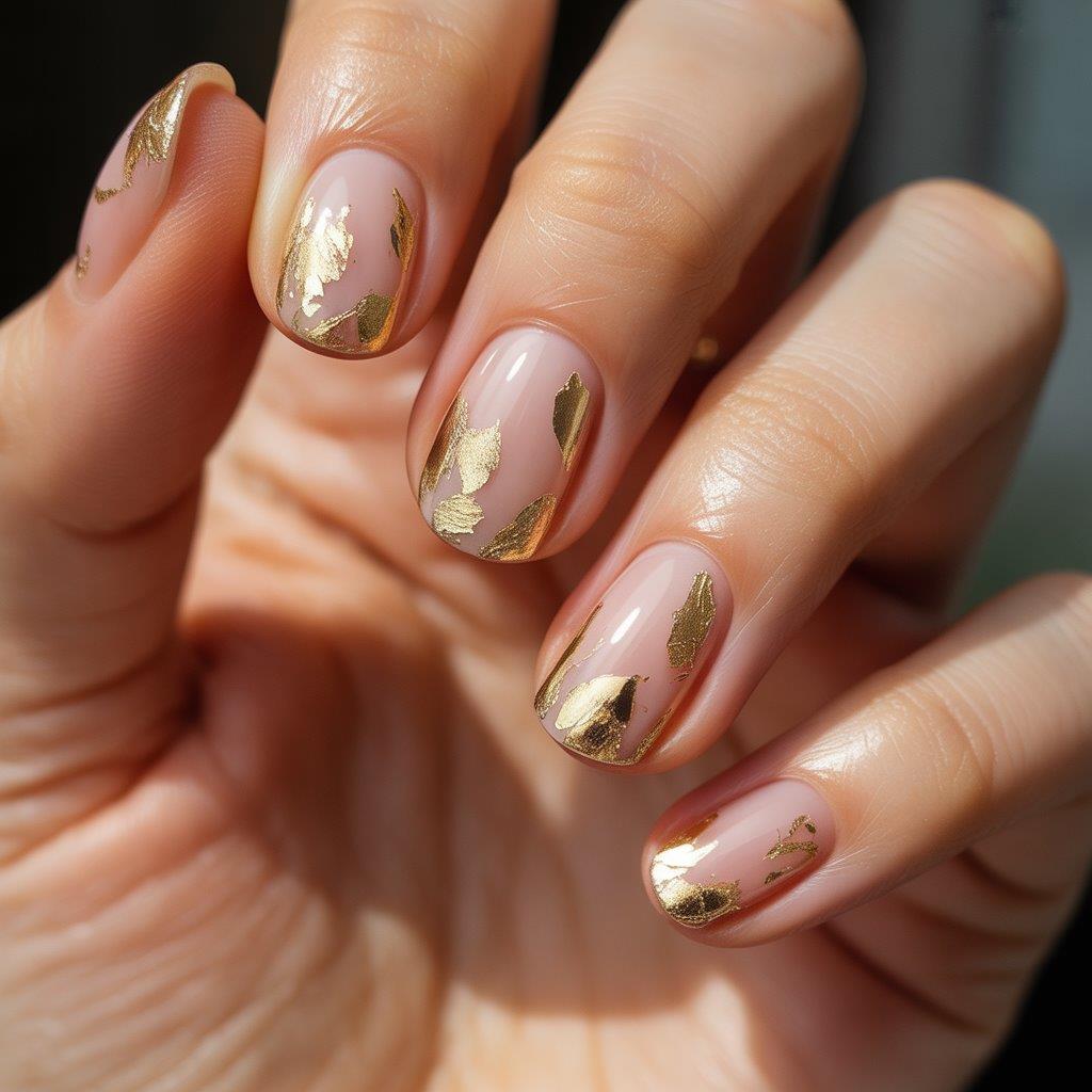 Gold flakes look fancy with zero effort. Just float a few pieces on a clear or nude base and boom—instant luxe.