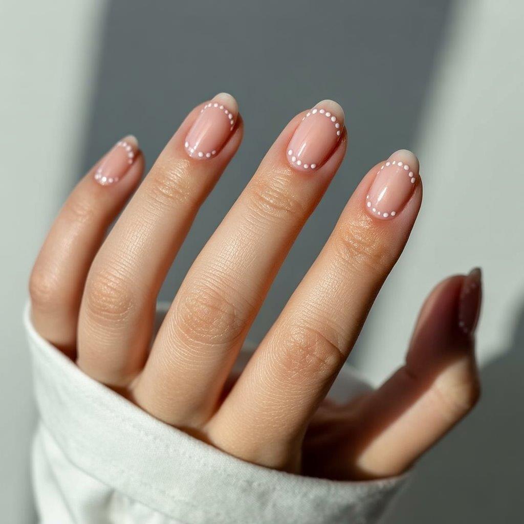 22. Nude Nails with White Dot Accents