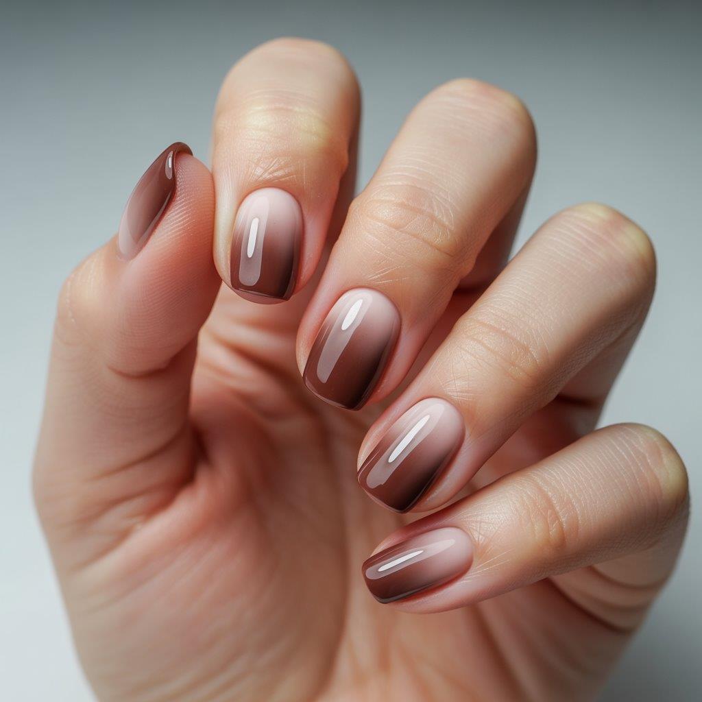 Gradient nails in soft mocha shades look cozy, warm, and delicious.