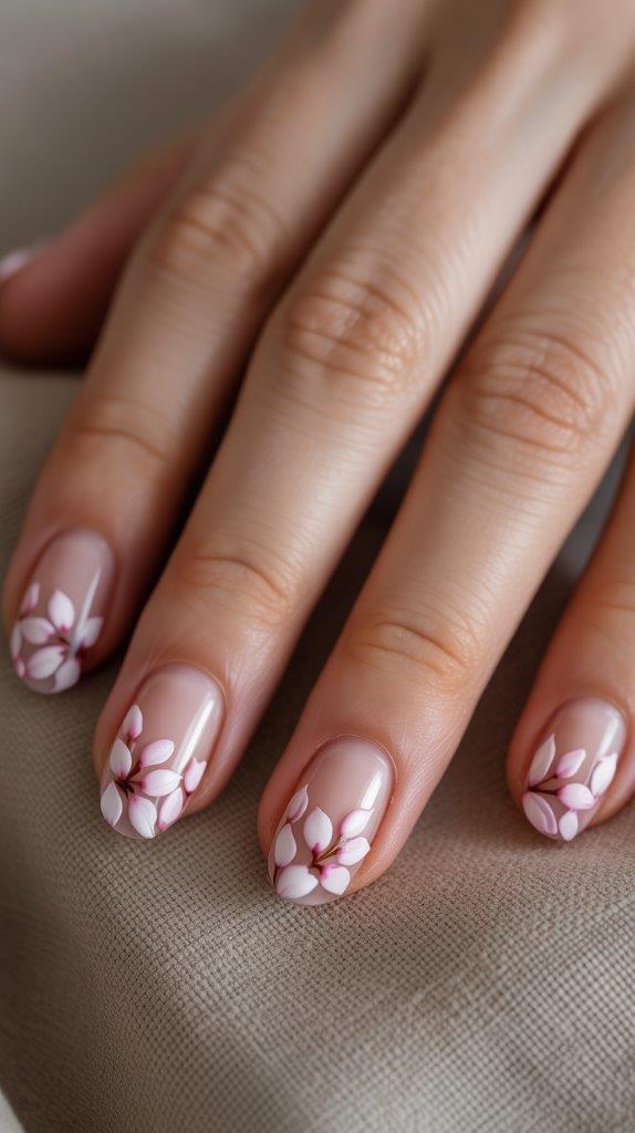 You don’t need to paint a whole tree. Just place a few small pink and white clusters at the very tip of your nails.
