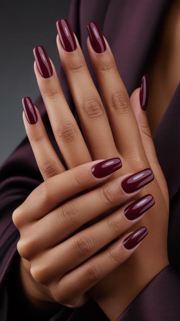 When fall rolls around, nothing beats deep burgundy with that vampy, luxurious vibe. This wine-colored shade on long square acrylics is pure sophistication.