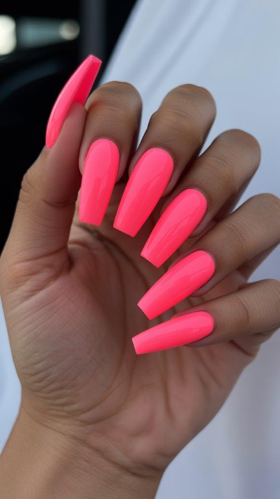 This isn’t your subtle nail look. This is confidence, fun, and zero apologies. I wore neon pink to a music festival once and honestly felt like the main character all weekend.