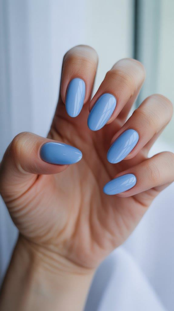 There’s something so calming about soft baby blue on long almond nails. This pastel shade is sweet without being juvenile, and it works surprisingly well year-round.