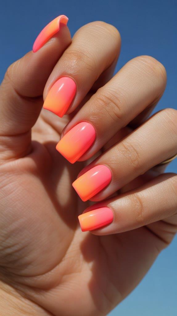 1. Neon Coral Square Tips