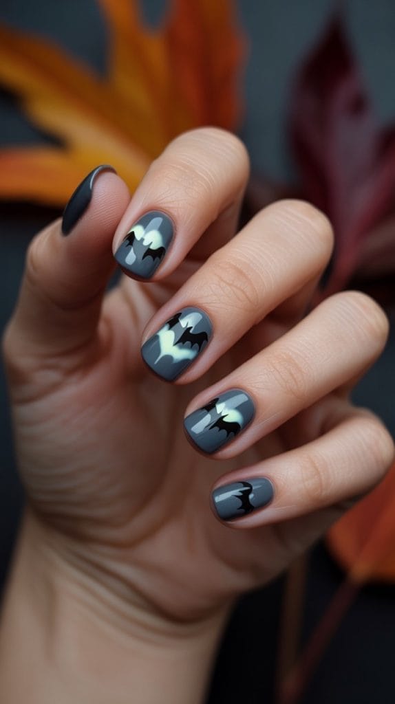 Get playful with a bats in the belfry nail design. Use a dark base and add bat silhouettes or decals for a spooky effect. You can also incorporate some glow-in-the-dark polish for an extra eerie touch. This design is perfect for those who love the playful and spooky spirit of Halloween.