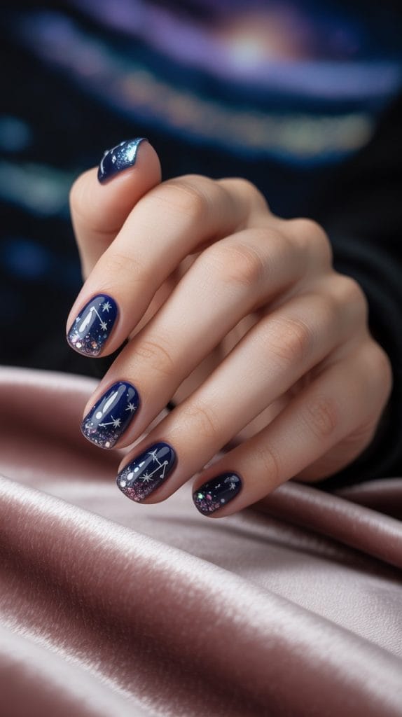 Capture the magic of the harvest moon with a celestial nail design. Use navy blue or black as your base and add moon and star details in silver or gold. You can also incorporate some holographic polish for an otherworldly glow. This design is perfect for those who are captivated by the beauty of the night sky.