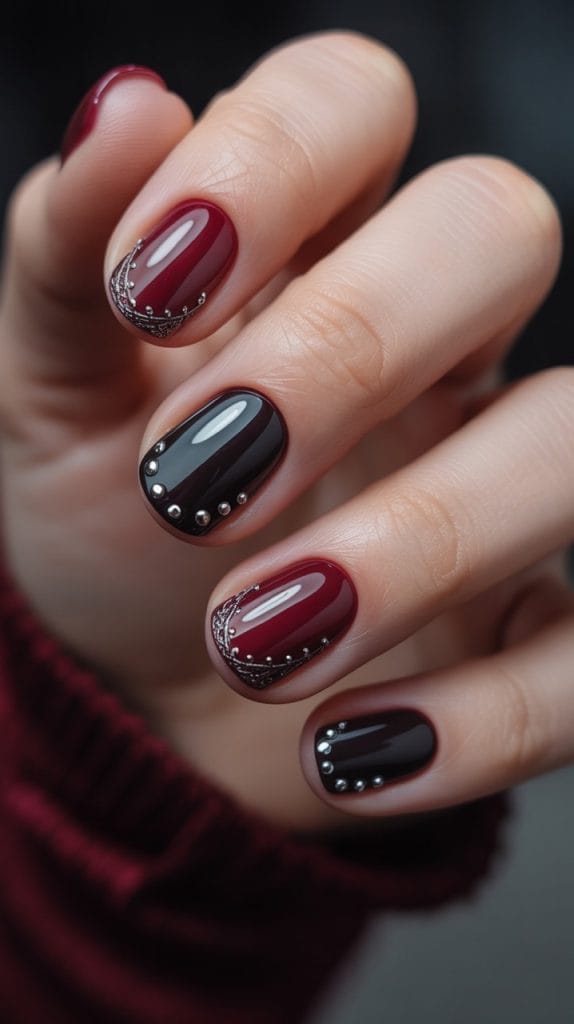 Embrace your dark side with a gothic glam nail design. Use deep shades like black, burgundy, and dark purple. Add some silver or black studs for an edgy look, or incorporate lace patterns for a touch of elegance. This design is perfect for those who want to channel their inner vampire or simply love a darker aesthetic.