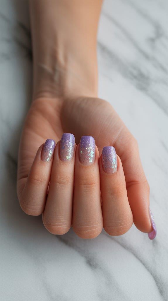 Why choose between sparkle and subtlety when you can have both? A glitter gradient starting at the tips of your lavender nails is pure magic. Use a fine, iridescent glitter or even a matching lavender shimmer. It feels celebratory without being overwhelming—perfect for a weekend brunch or just because it’s Tuesday.