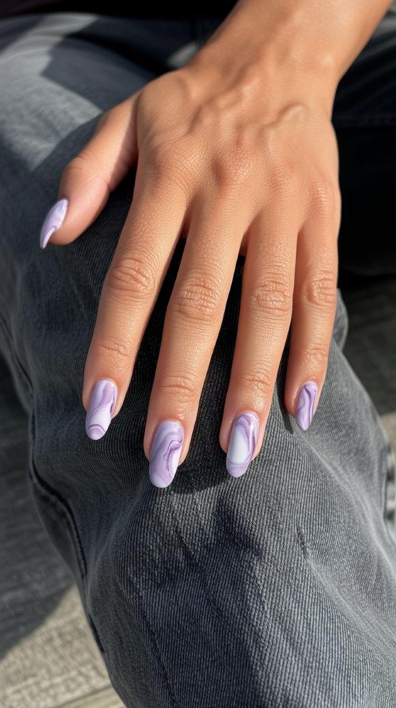 Marble nails sound intimidating, but the pastel version is so forgiving and dreamy. Swirls of white, darker lavender, and maybe a touch of grey through your base color create a stunning, stone-like effect. No two nails will be alike, making your pastel lavender manicure a unique masterpiece.