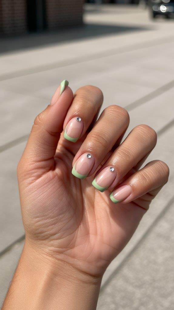 9. Mint French Tips with Rhinestones