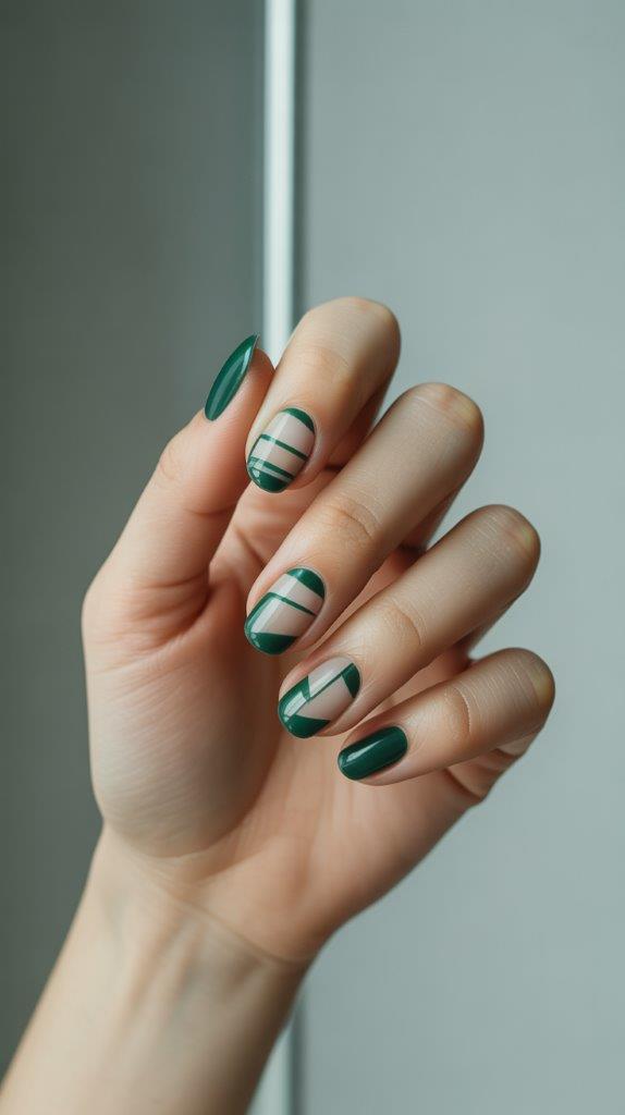 For a truly modern manicure, play with negative space. Leave part of your natural nail bare in a clean geometric shape (like a triangle or a stripe), and fill the rest with your chosen green polish or a metallic accent.
