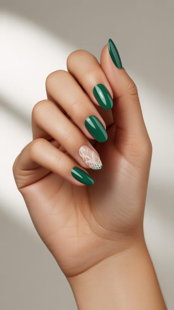 If your green dress has lace detailing, this is your moment. Match your nail polish to your dress *exactly*. Then, using a fine brush or stamp, add tiny, delicate white lace patterns along the base of your nail or on an accent finger.