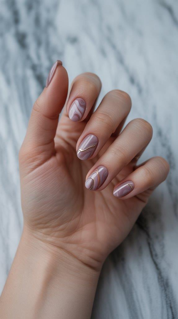 Marble nails are a timeless art form. A dusty mauve or purple-grey base swirled with white and thin, delicate gold veins looks incredibly luxurious. Each nail will be a unique, stone-like masterpiece. This design feels earthy and elegant, like you’ve captured a little piece of abstract art from a fancy hotel lobby. It’s a serious conversation starter.