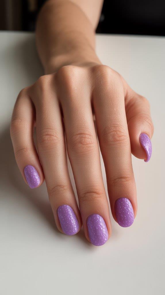 Sometimes, more is more. A full-coverage, fine violet glitter polish is pure joy in a bottle. It catches every bit of light, making your hands look like they’re covered in tiny gemstones. Can’t commit to all ten nails? Use it as a glitter gradient over a solid purple, or just paint your ring finger for a “glitter accent.” Life’s short, wear the sparkle.